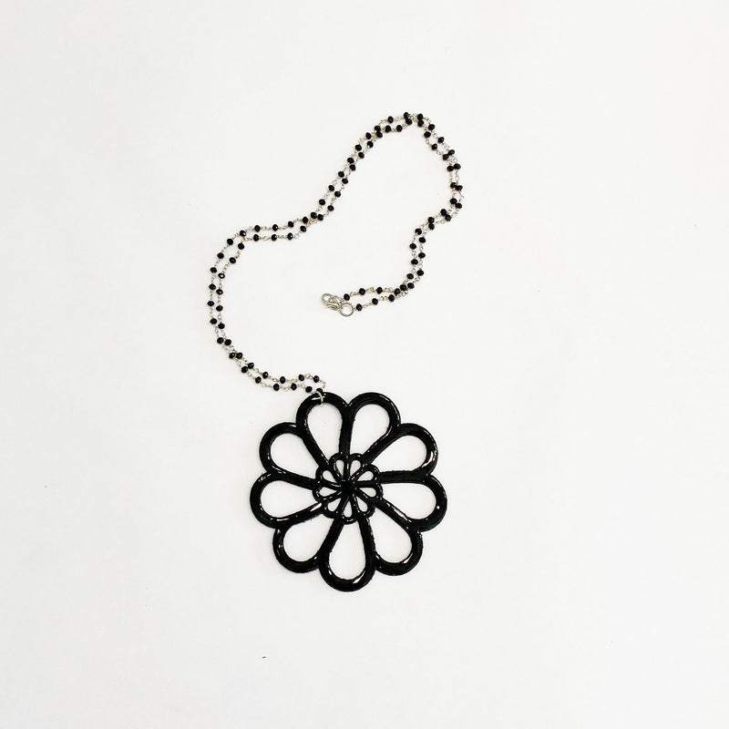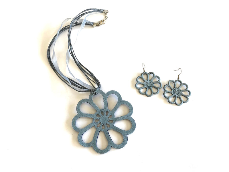 What better way to elevate your look than with a unique elegant hand-pressed Spanish leather Necklace? You can match it with any of our large earrings styles to dressed up any of your looks.